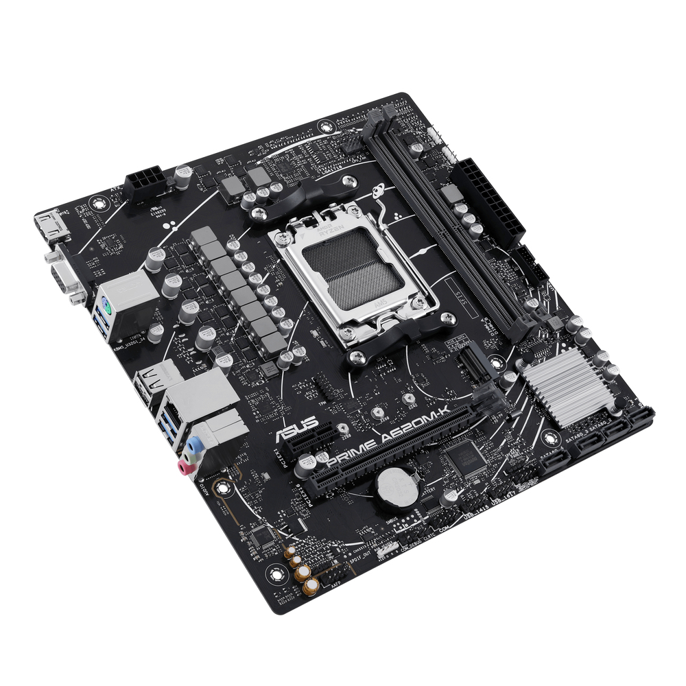 Asus heeft met de Prime A620M-K een goed moederbord in de markt geplaatst. Vanwege het Micro-ATX formaat moederbord heb je toch nog genoeg mogelijkheden met aansluitingen om een fraaie computer te maken. Kijk verder onder behuizingen voor het kiezen van een mooie degelijke Micro-ATX behuizing! Het moederbord heeft socket AM5 en A620 chipset, je kunt er 2 DDR5 modules in kwijt.