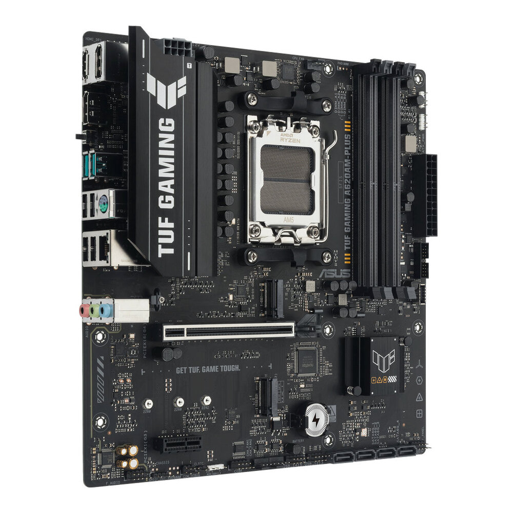 Dit ASUS TUF GAMING A620AM-PLUS moederbord is een mATX moederbord met socket AM5, het is voorzien van de A620A-chipset. Dit moederbord biedt vier geheugenslots voor maximaal 256 GB DDR5-geheugen en één PCI-E 4.0 x16-slot voor krachtige videokaarten.