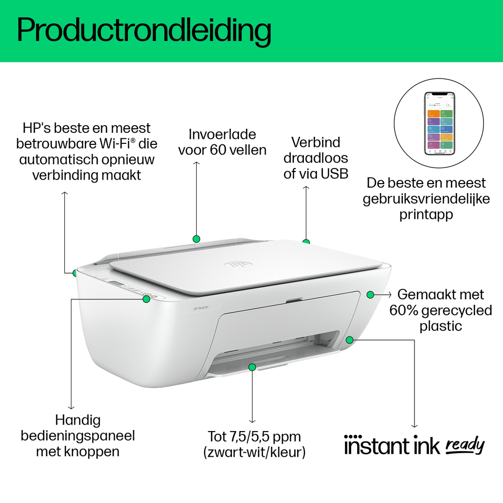 De HP Deskjet 2810e all-in-one inkjetprinter is een veelzijdig apparaat dat printen, scannen, en kopiëren mogelijk maakt.
