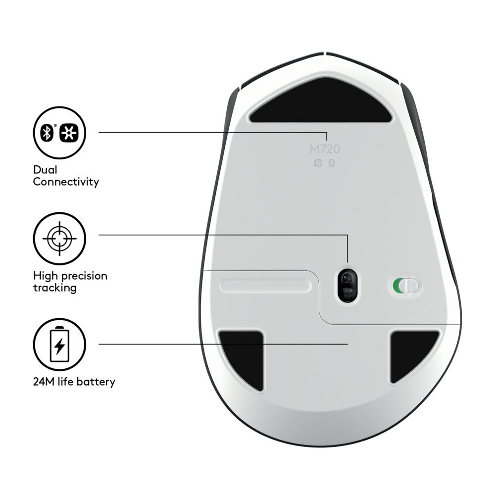 Met knoppen die tot 10 miljoen klikken kunnen weerstaan, heeft de M720 het uithoudingsvermogen van een atleet. Het extra grote ontwerp voor de rechterhand ligt prettig in uw handpalm, met een rubberoppervlak dat zacht aanvoelt.